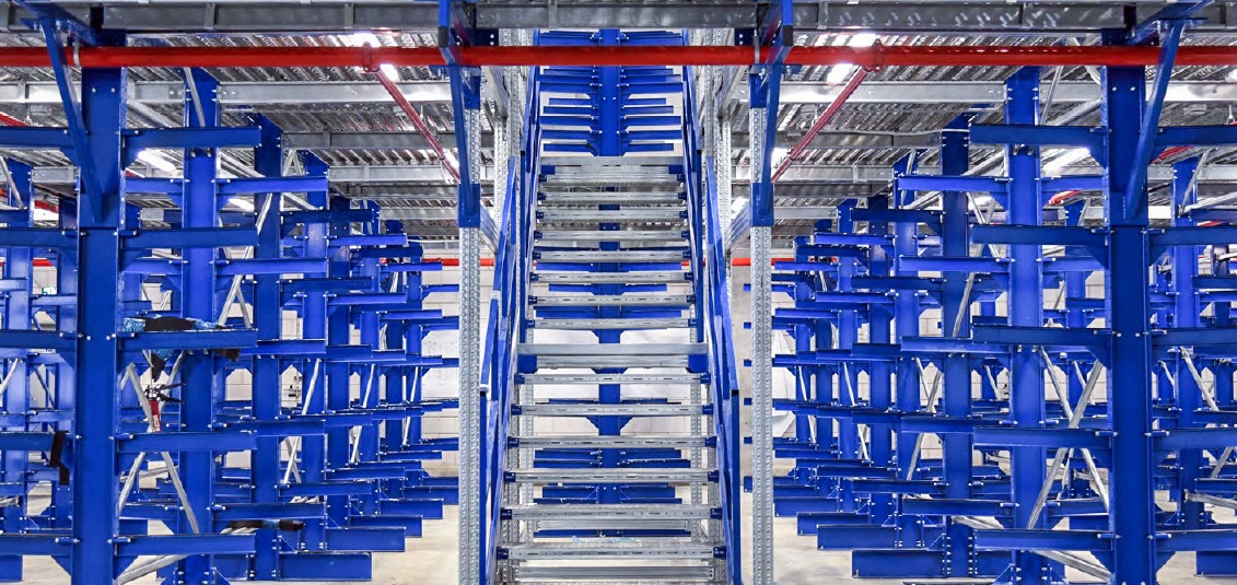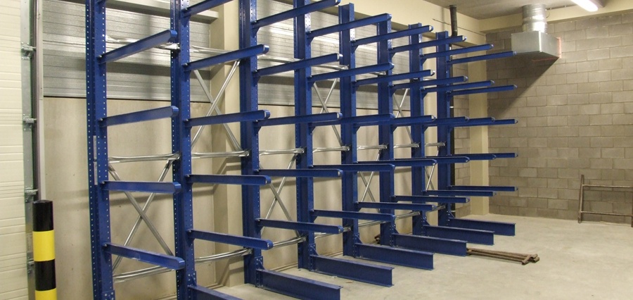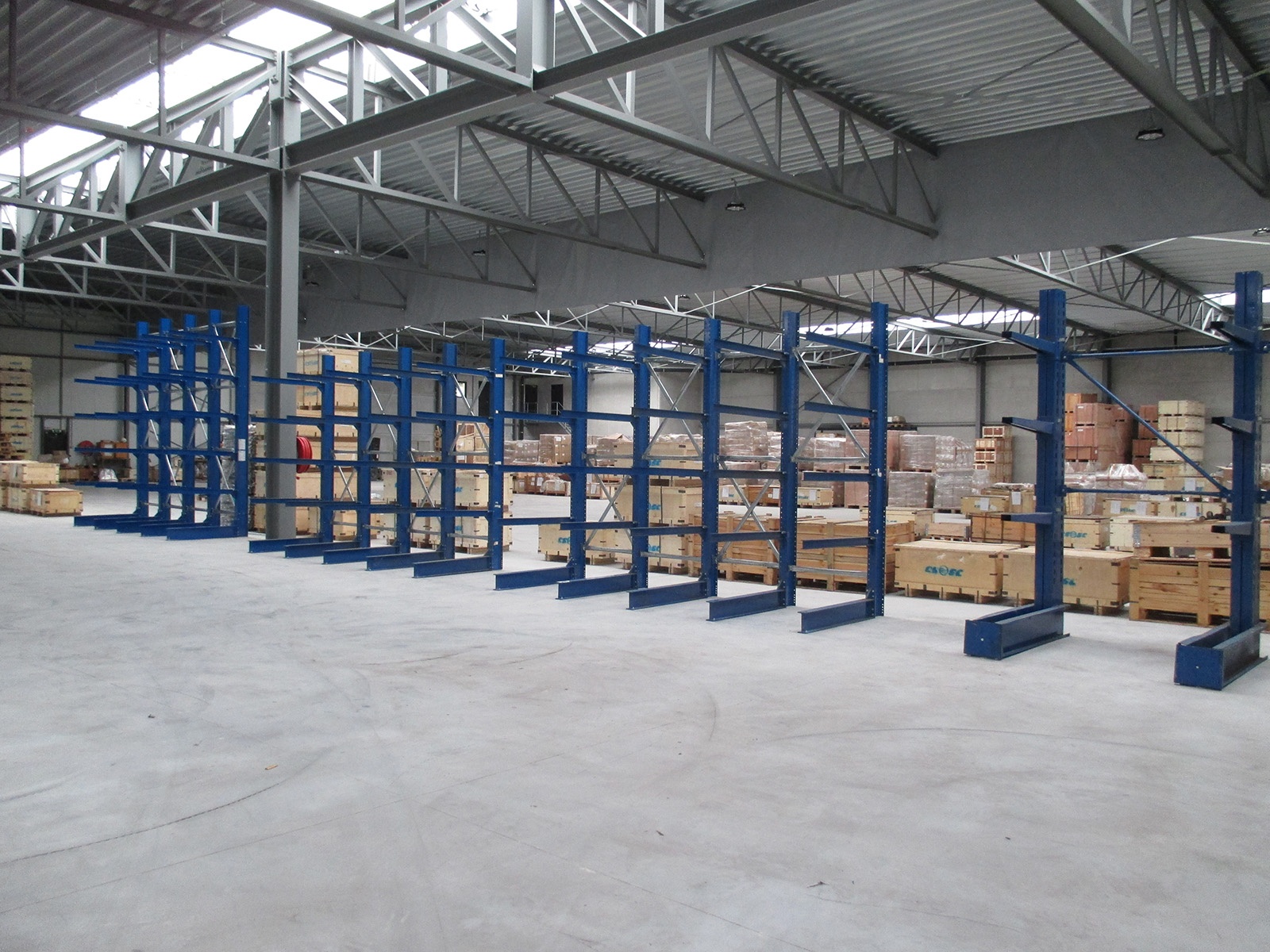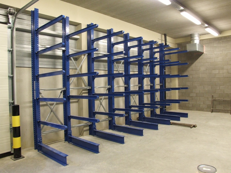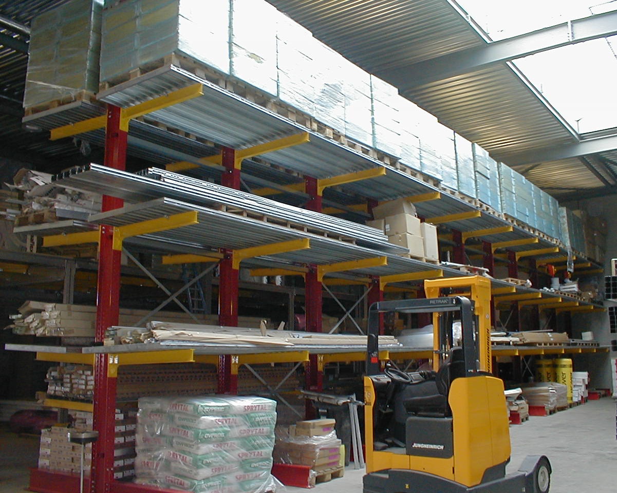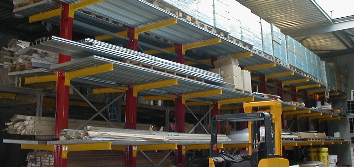 Draagarmstelling voor opslag van lange en zware materialen met mechanische handling